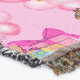 Ilustracion de una adorable bebé vestida de rosa, con el pelo en bollos con arcos rosas y tiara princesa. Rodeado de juguetes y con globos rosados y dorados encima con estrellas y pancartas lunares. Un regalo lindo para los padres que esperan, la ducha de bebé, la revelación de género o el regalo de cumpleaños del bebé.