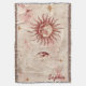 Borgoña celeste y oro nombre personalizado lanza una manta. El oro burdeos y los colores vivos de moda. Fácil de personalizar con un nombre personalizado. Luna de sol y estrellas tema celestial con escritura de escritura moderna.