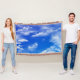 Las nubes blancas mullidas en un cielo azul brillante diseñan.