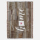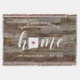 Muestra orgullo por tu estado natal con esta linda y rústica manta de lanzamiento de tablón de madera falsa que presenta "hogar" en letras de caligrafía blanca con un mapa en silueta del estado de Nuevo México que reemplaza la letra "O". Una ilustración de corazón rosa dentro del mapa del estado completa el diseño; puedes cambiar la posición del corazón a tu ciudad natal abriendo la herramienta de diseño y arrastrando la forma del corazón a tu lugar favorito. Personaliza con tu ciudad natal, nombre de familia y año de establecimiento para crear un regalo de inauguración perfecto y memorable o un complemento para tu nuevo hogar.