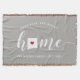 Muestra orgullo por tu estado natal con esta linda manta gris rústica que presenta "hogar" en letra de caligrafía blanca con un mapa en silueta del estado de Nuevo México reemplazando la letra "O". Una ilustración de un corazón rojo dentro del mapa del estado completa el diseño; puedes cambiar la posición del corazón a tu ciudad natal abriendo la herramienta de diseño y arrastrando la forma del corazón a tu lugar favorito. Personaliza con tu ciudad natal, apellido de familia y año de establecimiento para crear un regalo de inauguración perfecto y memorable o un añadido a tu nuevo hogar.