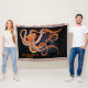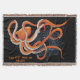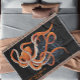Un pulpo naranja contra un fondo negro. Tentáculos Octopus dentro y alrededor de las burbujas y una mandala azul