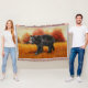 Un osito negro adorable dando un paseo por un campo de follaje de colores vivos de otoño.