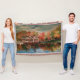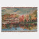 Pintura de paisajes acuarelas y acristaladas, capturando una pintura de paisajes lacustres con casas cerca de la costa.