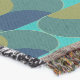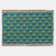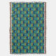 Esta manta de tiro tiene un diseño moderno de avales verde azulados de semicírculos en verde y marina dentro de ellos sobre un campo de turquesa.