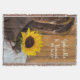 Personalice el encantador Boda de Girasol del País con los nombres de la novia y el novio y la fecha de la ceremonia matrimonial para crear un regalo único y duradero para la pareja que ha planeado una granja rural o nupcias al estilo de rancho. Esta manta de boda rústica de moda, informal pero elegante, personalizado, presenta una pintoresca fotografía floral de un par de botas de vaquero marrón y flor de girasol amarillo con fondo de granero marrón.