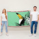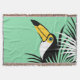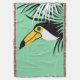 Arte estilizado de aves de la selva con un tucán toco entre grandes hojas de palma