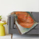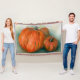 Esta manta de tiro es maravillosamente acogedora para la temporada de otoño y está impresa con mi obra de arte original creada en pasteles suaves que representan tres calabazas naranjas puestas en un parche de jardín de otoño.