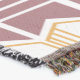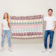 Esta manta de tiro tiene un diseño Boho de diferentes formas con líneas en ellos de varios colores.