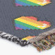 Esta obra de arte presenta un colorido corazón de píxel sobre un fondo oscuro.