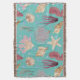 Los ilustraciones coloridos de las conchas marinas y la vida vegetal submarina crean un patrón sobre el fondo acuático