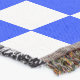 Diseño de patrones de cuadrados geométricos de verificación azul y blanco