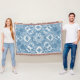 Envuelve el encanto invernal con esta manta de copos de nieve azul. El patrón geométrico repetitivo crea un ambiente acogedor y helado que combina la belleza estacional con la simetría clásica.