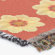 Acurrucarse y mantenerse cómodo con esta manta de lanzamiento con bordes que muestra la imagen de una flor dahlia amarilla sobre un fondo rojo brillante e impreso en un patrón repetido. ¡Un bonito diseño floral!