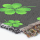 Manta Pattern of green shamrocks on black background