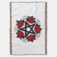 Pentagrama negro con estampado, decorado con rosas rojas florecientes con hojas sobre fondo blanco. Estilo tatuaje.