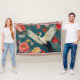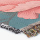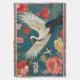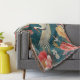 Elegante manta de tiro con un patrón inspirado en la chinoiserie con peonías rojas y rosadas con grúas sobre un fondo azul pizarra. Perfecto para una decoración de moda oriental Art Nouveau y para añadir un toque rojo inesperado a tu interior.