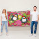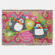 Hermosa manta de tiro de Navidades con dos adorables pingüinos en patines de hielo, pañuelos a rayas y gorras de invierno y dos árboles de Navidad decorados con un fondo rosado caliente con orbs de copos de nieve, un anillo de sólido rosa con copos de nieve blancos y un centro de mostaza con pequeños puntos de polka blancos. Usted puede fácilmente personalizar esta falda de árbol festivo con su nombre familiar!