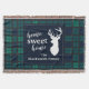 Cute hogar dulce hogar Navidades de casa lanzan manta que puedes fácilmente personalizar haciendo clic en el botón "Personalizar", con silueta de ciervo y tartán de clan Blackwatch con diseño de cuadros verdes y azules. Hace un gran regalo para el hogar