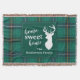 Los Navidades dulces caseros de casa lindo tiran manta que se puede personalizar fácilmente haciendo clic en el botón "Personalizar", con silueta de ciervo y tartán Henderson en diseño de cuadros verdes y dorados. Perfecto para alojarse durante las vacaciones. Hace un gran regalo para el hogar