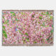 Pluma florida. Flores de arbustos de ciruela floridos también conocidos como almendros floridos. Flores festivas rosas con fondo azul y verde. Tema de primavera. Este es un ciruela, este es un almendro, este es un cerezo. Este árbol lo es todo. Se origina en China y se llama científicamente Louiseania triloba, Amygdalus triloba y Prunus triloba. Se considera una cereza de arbustos, algunos la llaman sakura. Plantas muy elegantes y decorativas. Productos y souvenirs horizontales o orientados al paisaje.