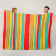 Una manta de lana con un diseño de rayas colorido y original. Esta versión tiene una tira más amplia en el centro que también se puede personalizar con un nombre.