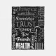 18 Deseos de vida extraordinarios para alguien especial. Una frazada perfecta para el dormitorio, el salón, el dormitorio y la sala de juegos. Hermosos deseos para dieciocho bendiciones de una vida maravillosa. Deseos de diseño de personalizable: Prosperidad, Confianza, Creencia, Felicidad, Diversión, Conocimiento, Salud, Valor, Sabiduría, Fuerza, Sueños, Alegría, Belleza, Familia, Paciencia, Amigos, Amor y Gracia. Cada palabra es fácil cambiar el color de las letras, la ortografía y el color de fondo o agregar la foto. Grandes regalos para todos. Hermoso con nombres, frases o destinos de viaje también.