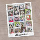 Un diseño con un fondo básico. Utilice hasta veinte fotos cuadradas para crear un regalo único y personal. una cuadrícula estándar de 4 x 5 con un área para añadir texto. Si necesita ajustar las imágenes, haga clic en la herramienta personalizar para realizar cambios.