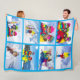 Añade ocho fotos de tu propia orientación hacia el paisaje para un collage de fotos minimalistas contra un azul cielo brillante. Elija un color de fondo diferente o agregue texto para crear su propia manta de capa grande. Reemplace las fotos del viaje de esquí de vacaciones de invierno con sus propias imágenes familiares.