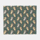 A blanket's front side features a repeating dinosaur pattern in earthy tones on a dark background. The back side is plain white with visible creases.