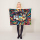 Una manta artística de león en líneas abstractas de colores brillantes. Este diseño hará una declaración audaz en cualquier habitación, ya sea sola, o combinada con otras en esta colección.