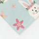 Este lindo diseño presenta conejitos blancos de Pascua con flores rosas en un fondo azul claro. Pascua de Pascua.