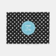 Elegante patrón geométrico de polkadot blanco sobre color de fondo negro personalizable. Acento del círculo azul del bebé con monograma de personalizable.