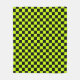 A vibrant checkerboard pattern with alternating neon yellow and black squares creates a striking geometric design, conveying a bold and energetic tone.