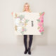 Una manta con elegantes calabazas blancas acuarelas con acentos de falso purpurina de oro. Rodeado de hojas verdes y flores silvestres rosas.