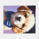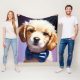 Manta Polar Adorable Cachorro Fluffy con Azulejos de Bow Azul