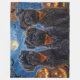 Descanse el espíritu espeluznante con este inquietante diseño de Halloween que presenta una manada de perros bajo un cielo oscuro, iluminado por la luna, rodeados de bates voladores y calabazas brillantes. Perfecto para los amantes de la diversión con sus peludos amigos.