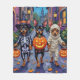 Aficionados adorables vestidos con juguetones disfraces de Halloween llevan baldes de calabaza mientras truco o truco bajo el cielo iluminado por la luna. Este diseño festivo resalta el tambaleante abrigo de la raza, la expresión de tipo mono y la personalidad espiritual, capturando a la perfección la atmósfera espeluznante y divertida de la noche de Halloween. Una deliciosa celebración para los amantes del perro y los fans de Halloween por igual.