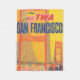 Poster de viajes vintage por volar TWA a San Francisco, muestra un estilizado puente Golden Gate, alrededor de 1957.