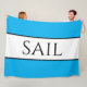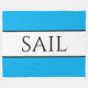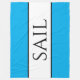 Este diseño atrevido y náutico presenta un texto deportivo y moderno "SAIL" centrado dentro de una amplia franja blanca central resaltada con delgadas pinstripes negras adosadas a las franjas exteriores azules azuladas. Los colores y el texto de este diseño se pueden personalizar.