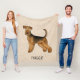 Manta Polar Airedale Terrier Cute Cartog Perro Y Nombre Beige