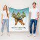 El personalizado original de Destei ilustracion de un lindo perro de la raza Airedale Terrier. El perro es colocado en una escena invernal con tres abetos verdes y la caída de la nieve. El fondo es un degradado de azul a blanco que da al diseño ese aspecto frío del invierno. También hay un área de texto personalizable que ahora dice "¡Feliz Navidad!". Bajo él hay otro área de texto personalizable para un nombre de familia u otro texto personalizado.