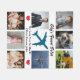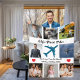 Modern 'Sky's Finest Pilot' Photo Collage keepsake Fleece Blanket featuring 8 insta style photos of your choice, the text 'Sky's Finest Pilot' in script font, a blue airplane illustration that can be customized to a different color, and a heartfelt message 'We Love You So Much [Names]' with red hearts on each side. Perfect for a pilot's birthday or special occasion!