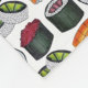 Un original ilustracion de marca de una variedad de deliciosas sushi japonesas como el rollo de California, el rollo de atún picante, el rollo de aguacate, el rollo de caviar y el nigiri de salmón. Perfecto para tu aficionado a la comida japonesa.