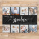 Dale a la abuela un regalo que ella apreciará. Esta manta de collage de fotos muestra ocho de sus fotos cuadradas favoritas de los nietos, junto con el mensaje "Te amo abuela". La palabra "abuela" aparece en un elegante guión de escritura a mano en blanco con florecientes al principio y al final sobre un fondo negro. Añade los nombres de hasta cuatro nietos. Un regalo ideal para vacaciones, cumpleaños o día de abuelos.