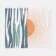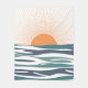 Resumen ilustracion de la salida del sol con sol naranja y decoración de olas de mar azul, blanco y turquesa