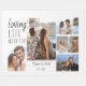 Funda de fotos de pulgas de moda que puedes personalizar con 5 de tus fotos favoritas. Este moderno diseño blanco y negro está escrito con escritura informal y tipografía de tipografía delgada. La plantilla está preparada para que añada los nombres y la fecha establecidos, así como las fotos, trabajando de izquierda a derecha. El texto dice "amar la vida contigo" - perfecto para parejas o familias románticas. Una elección elegante para la decoración contemporánea o minimalista - por favor, busque en nuestra tienda estilos y colores alternativos.