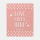AMAR LAS VIDAS AQUÍ MESA DE Fleece Rosa con TEXTO DE PERSONALIZABLE. Matrícula moderna y elegante, diseñada con LOVE LIVES AQUÍ en tipografía blanca y referencia de las Escrituras de PERSONALIZABLE que puedes personalizar añadiendo tu nombre (familiar). 1 Juan 4:16 dice: "Dios es amor, y el que permanece enamorado permanece en Dios, y Dios en él". Combinación de colores femeninos de PINK y BLANCO, con gráficos de doble corazón opcionales, que puede borrar si lo desea. Manta coincidente y otros colores disponibles.
