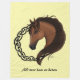 Un perfil de caballo marrón con nudo celta tribal trabaja en un círculo con un fondo amarillo
