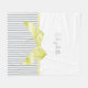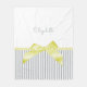 Una manta de lana de rayas gris y blanco adornada con una imagen de un lindo arco satinado amarillo claro. Personalice agregando el nombre de su chica favorito. Imagen plana impresa, NO colocada con una cinta real.